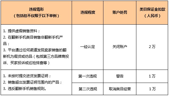 在更新后的规则中,要求翻新手机实行邀请入驻的方式,暂不接受卖家自主入驻;且受邀入驻翻新手机类目的卖家必须同时满足类目所有准入条件: