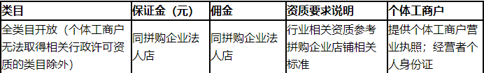 个体工商户需提供营业执照,经营者个人身份证,行业相关资质参考拼购企业店铺相关标准。