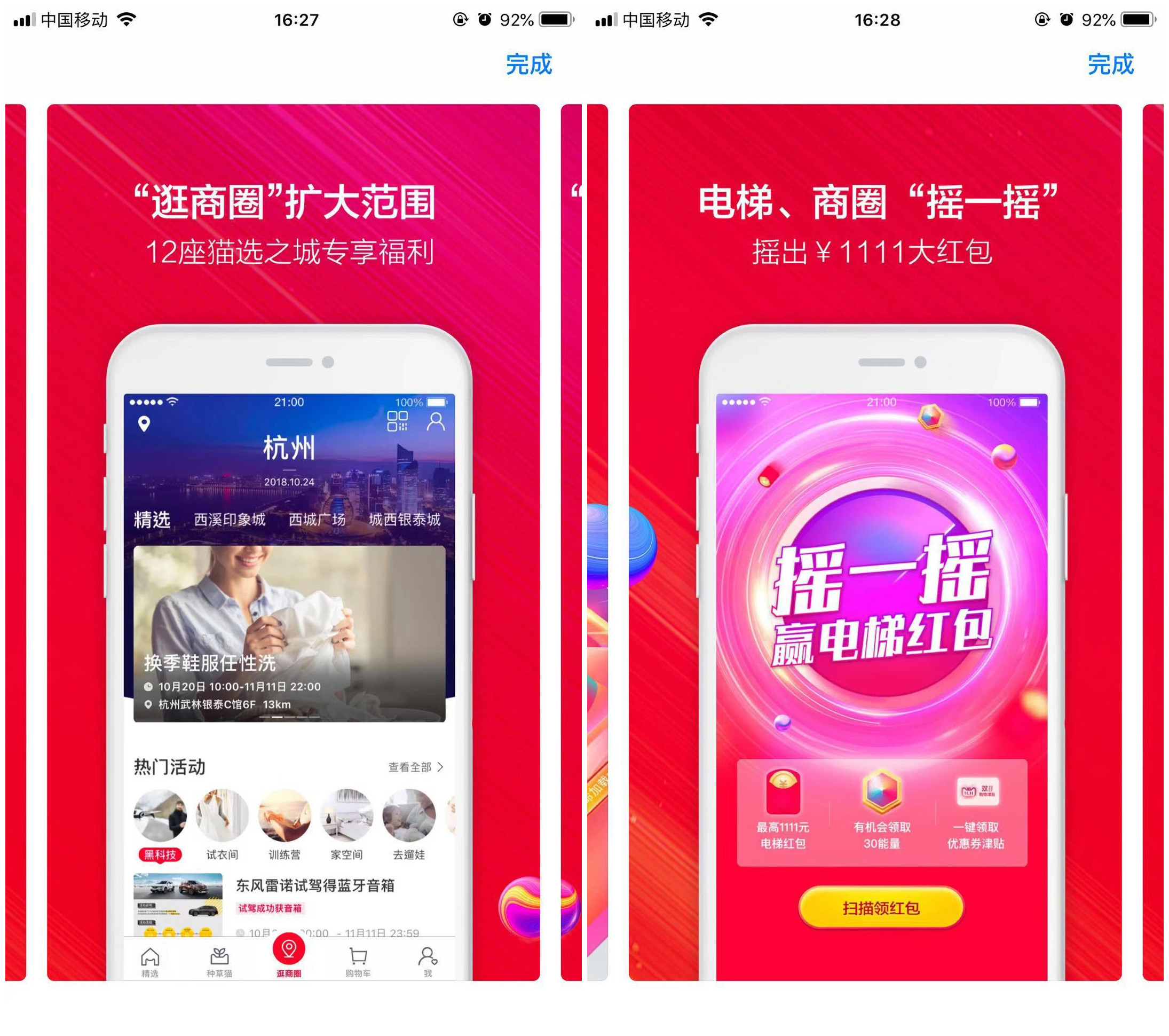 3. 摇一摇。将覆盖天猫海报的电梯、100个商圈、27座城的居然之家卖场,在天猫app摇一摇,有机会摇出1111红包和不同额度优惠券;