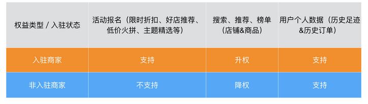 商家入驻前后的权益对比