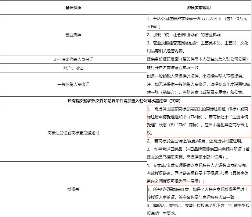 1. 资质文件需按要求提供营业执照、企业法定代表人身份证、开户许可证、一般纳税人资格证、商标注册证或商标受理通知书及授权书的相关证明。