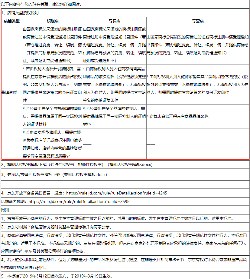 3. 店铺类型分为旗舰店、专卖店、专营店,商家需根据品牌资质提供相关资料入驻店铺。