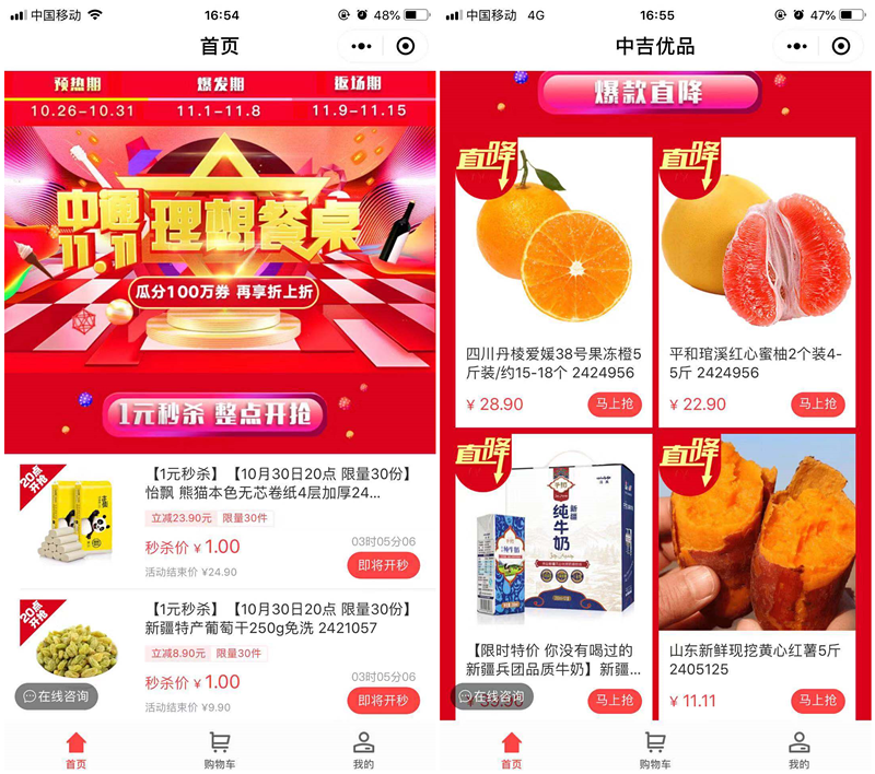 据悉,这款小程序名叫“中吉优品”,是由零售科技SaaS服务商有赞提供技术支持。中通快递此次在中吉优品中的双11活动时间线为:预热期10.26-10.31;爆发期11.1-11.8;返场期11.9-11.15。参加品类包括,水果生鲜、零食、纸品洗护、服饰床品、等品类。