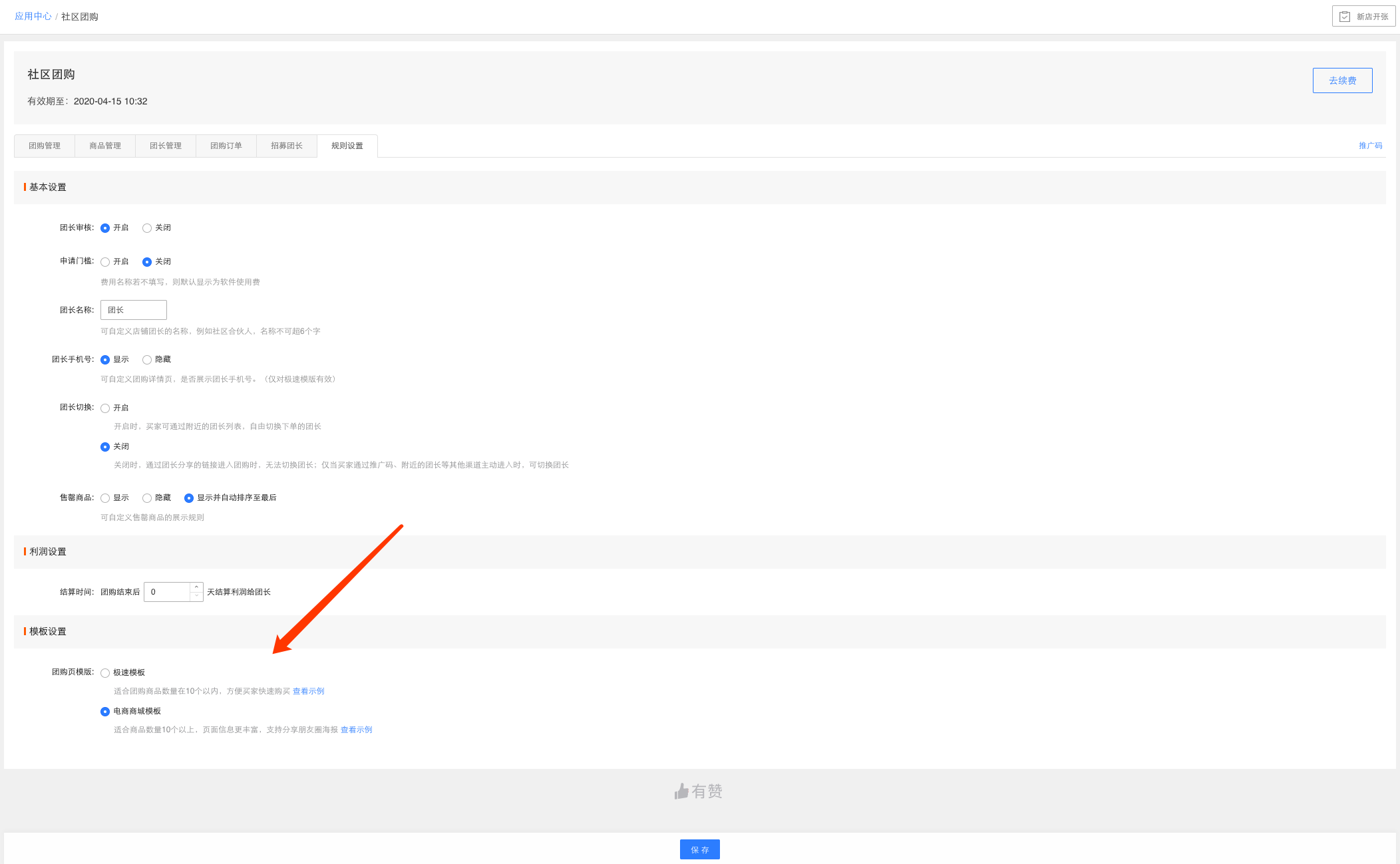 据悉,在商家端,商家可进入社区团购页面,在规则设置中选择模板设置,根据自己的经营场景,选择适合的团购页模板。