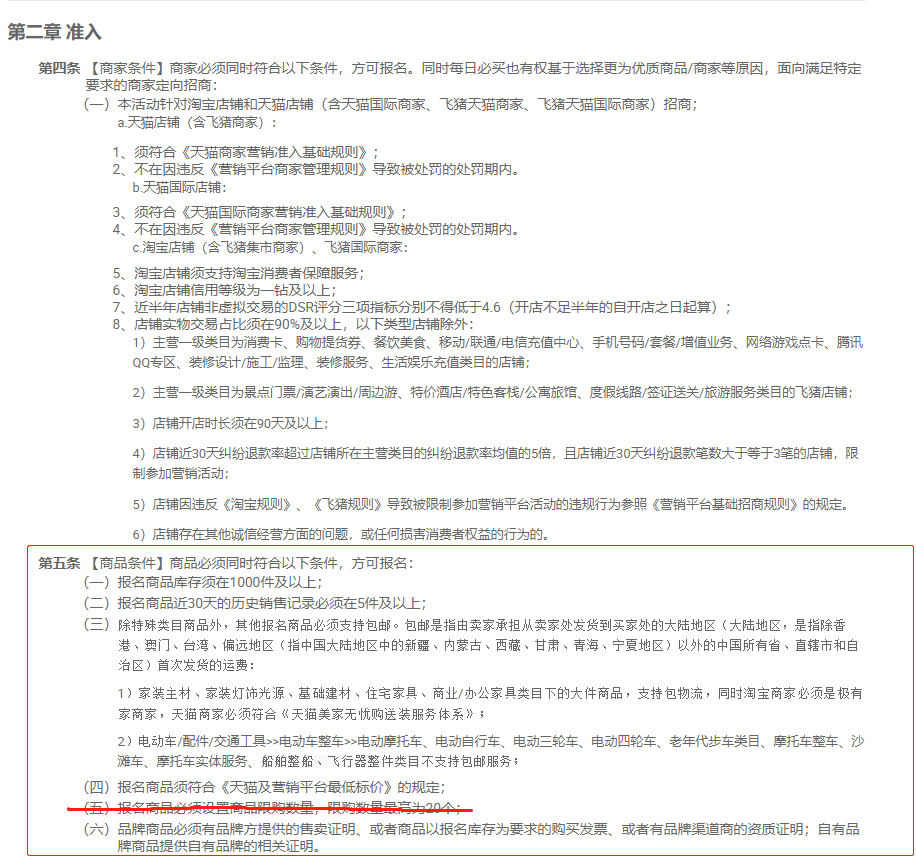 4、报名商品须符合《天猫及营销平台最低标价》的规定;