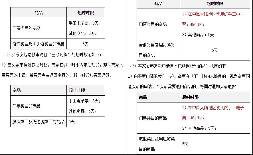 3. 买家在中国大陆地区使用的手工电子票自申请退款之时起,商家在48小时内未处理的,视为商家同意买家的申请,若买家需要退回商品的,将同时通知买家退货。