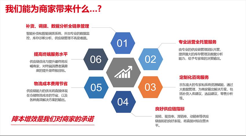 此外,京东还将提供专业的供应链库存管理团队,基于智能供应链管理系统,提供补货、调拨及数据分析服务内容,帮助商家提高库存合理性,挽回缺货损失,改善库存周转。