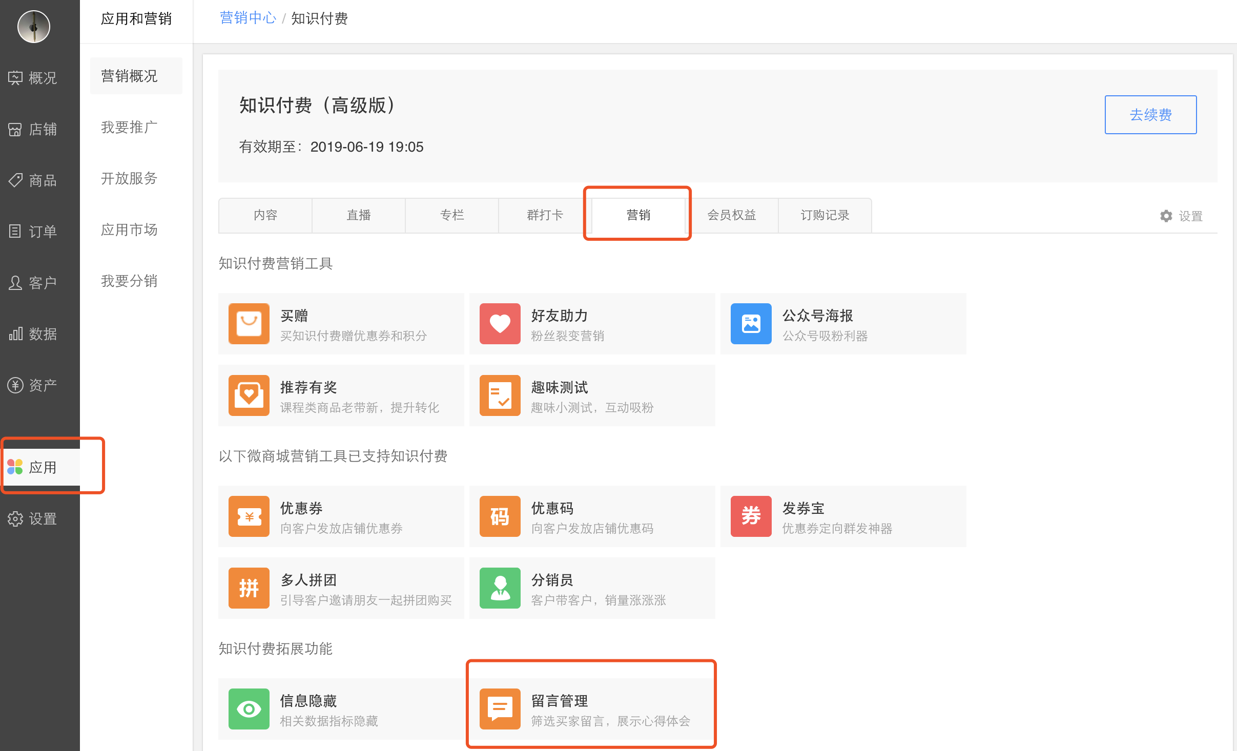 留言功能入口:有赞微商城-营销-知识付费-营销-留言管理;有赞教育-营销-留言管理