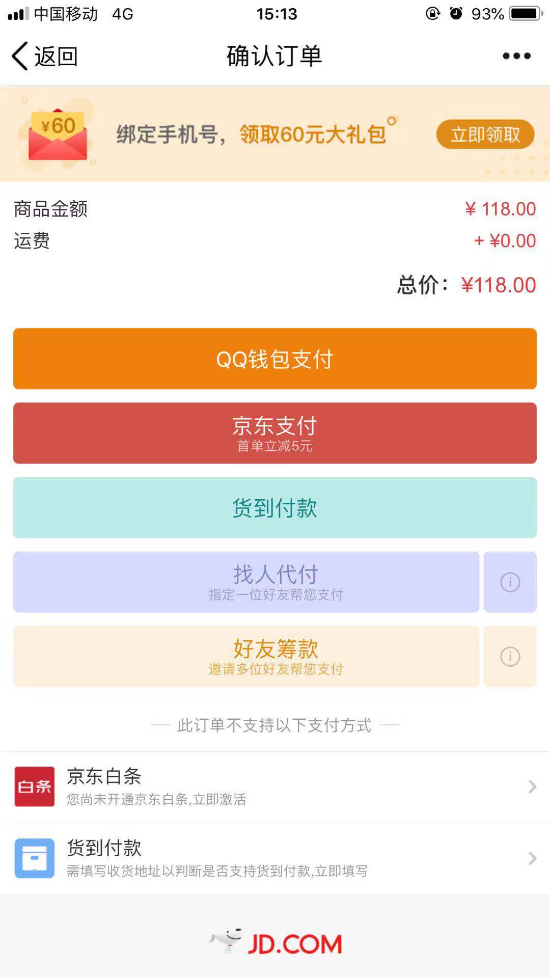 京东拼购订单支付页面