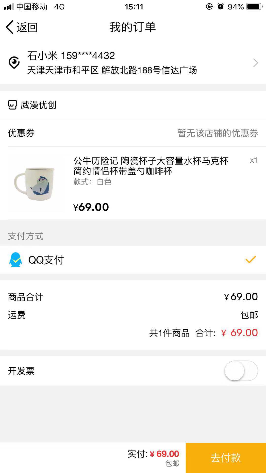 鹅漫U品订单支付页面