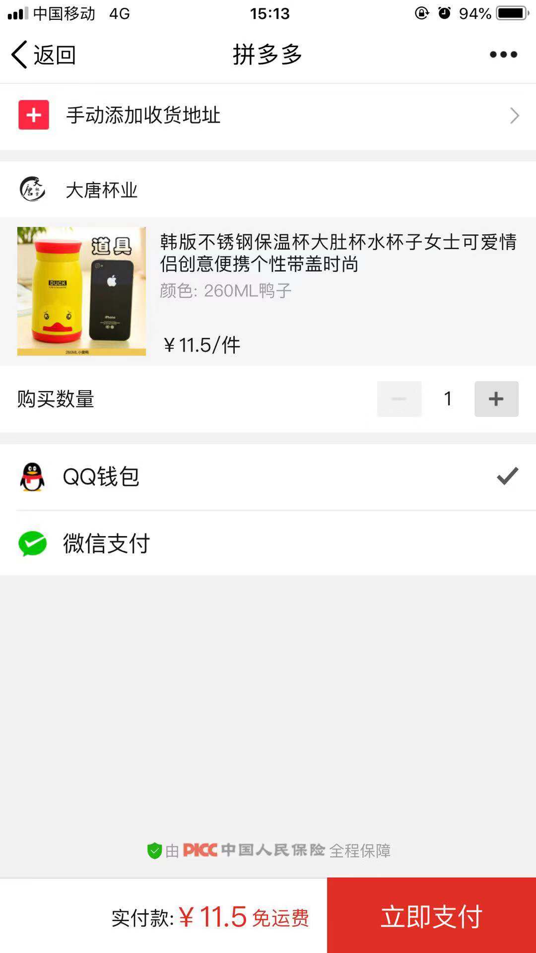 拼多多订单支付页面