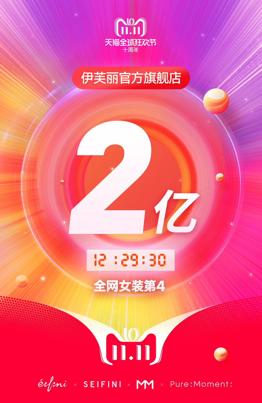 截至12时29分 伊芙丽双11销售额已破2亿元