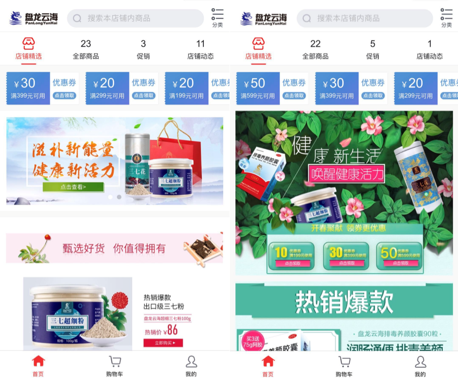 【前三张图为小程序页面,右下图为盘龙云海旗舰店在京东主页面】