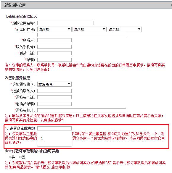 其次,国美新增对仓库设置优先级功能。同一区域多个仓库时商家可以按照设置优先级的方法进行优先出库,顾客下单时当满足覆盖区域和购买数量的发货仓多于一个,则优先选取级别高的发货仓(优先级1大于优先级2,以此类推),如同一区域多个仓库优先级一致系统将随机出库。