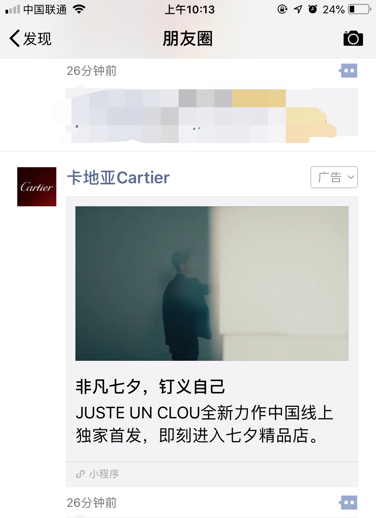【亿邦动力讯】8月7日消息,亿邦动力获悉,小程序商城内又添奢侈品品牌,今日卡地亚Cartier小程序商城“Cartier七夕精品店”在微信朋友圈以广告的形式现身。