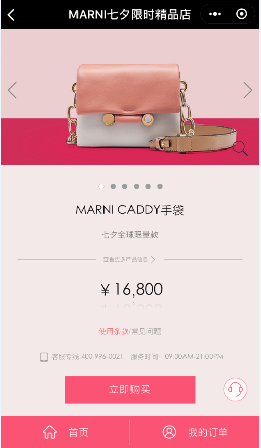 “MARNI七夕限时精品店”商城内,则在线售卖七夕商品有MARNI全球限量CADDY手袋。