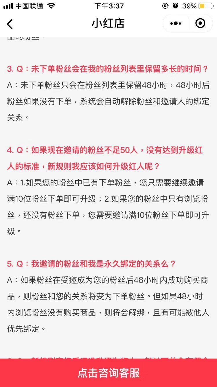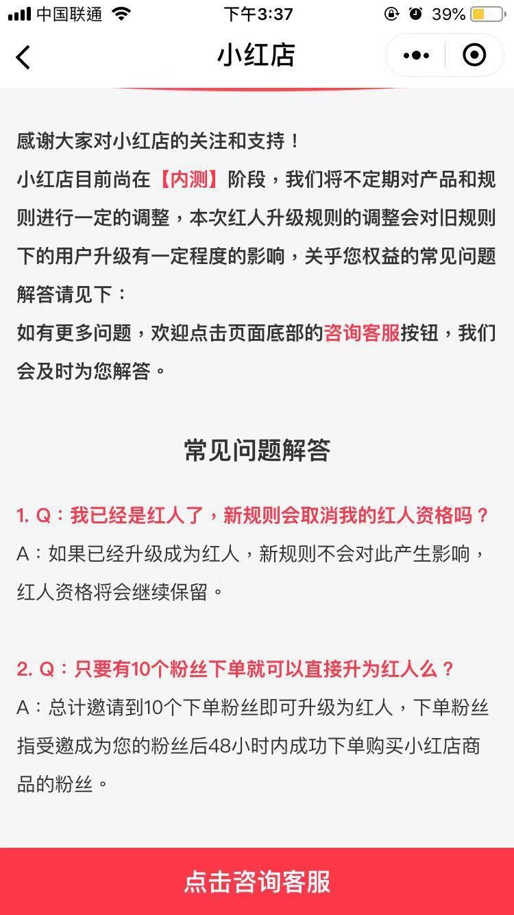 值得注意的是,新规则调整后之前已经成为红人的用户资格仍然保留,不产生任何影响,新用户完成新规则便可直接成为红人,也无需再邀请50位粉丝。邀请的粉丝下单后需绑定邀请人才算成功,未下单粉丝只会在粉丝列表保留48小时,48小时后仍未下单,系统将自动解除绑定关系。
