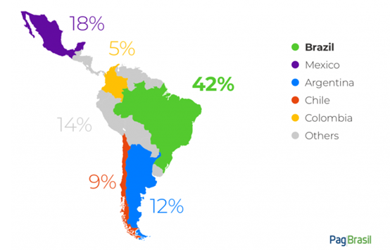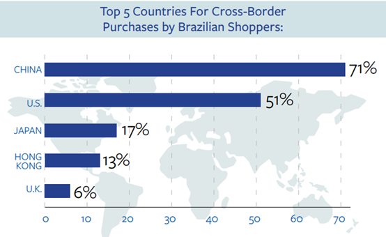 据了解,巴西是世界第七大经济体,还拥有拉丁美洲最大的在线零售市场,根据eMarketer的数据显示,巴西在拉丁美洲B2C电子商务市场中占比约达42%。据调查,巴西人最喜欢购买来自中国的跨境商品,每10位巴西消费者中就有7位在线购买过中国的商品。
