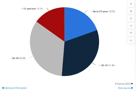 数据显示,2019年,巴西25岁以下网购人群近五分之一(19.5%),26岁至35岁网购人群占比达31.8%,36岁至50岁网购人群超过三分之一(约占33.6%)。