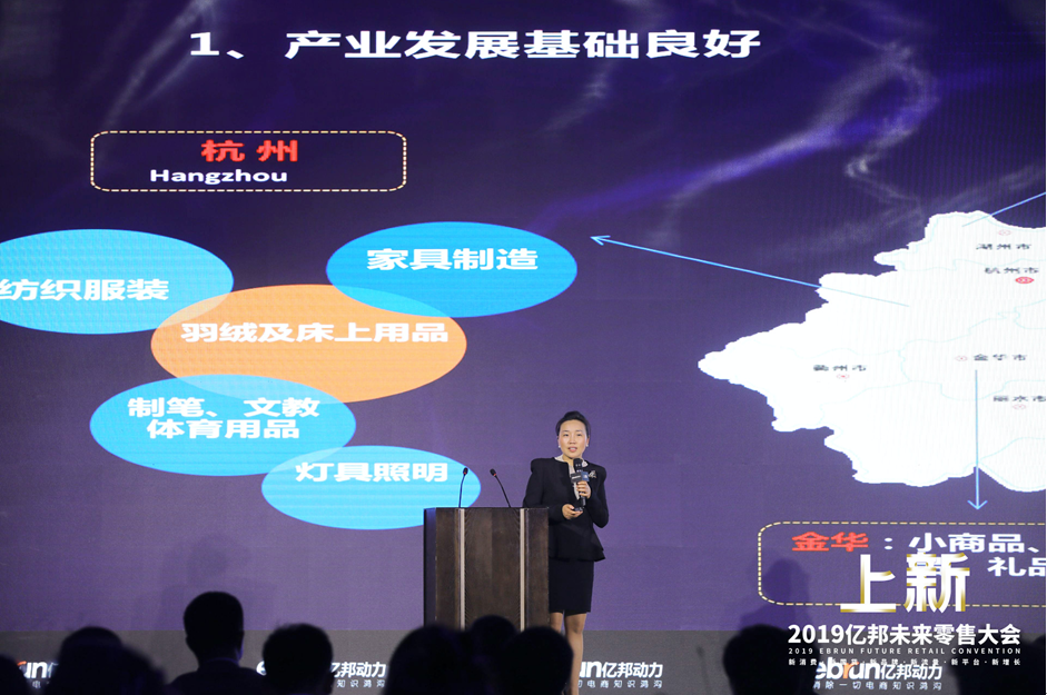 利朗达科技总裁万晓文介绍到,他们的项目品连优选在整个生意过程中主要关注几个方面,核心是商流,2019年对品连优选来说是一个起步的点,这个点还没有走到1,只是零点几,明年我们希望能够更多走向浙江地区16个产业集聚区,同时依托我们在杭州的经验,希望品连优选能够链接到全国更多地方的中小卖家,把杭州周边更多的东西通过杭州集散出去,我们希望在这个美好的时代,成为每一位跨境电商卖家快速发展的坚实后盾。