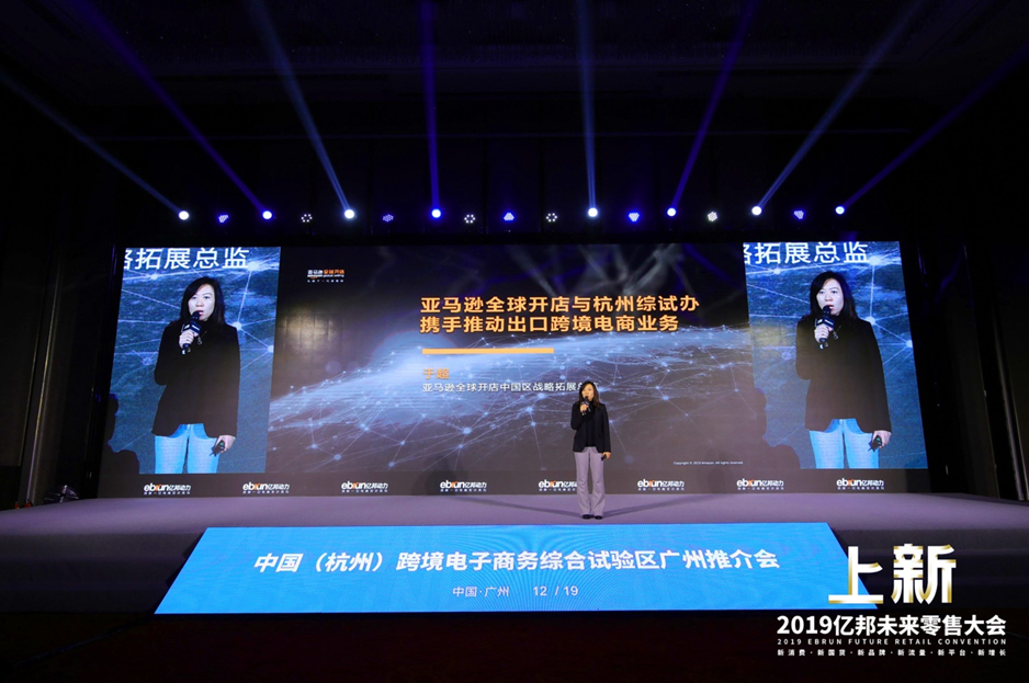 近日,在2019亿邦未来零售大会中杭州跨境电商综试区广州推介会成功举办。中国(杭州)跨境电子商务综合试验区建设领导小组办公室副主任施黄凯、外联宣传部部长武长虹女士,杭州市萧山区商务局副局长朱志刚先生、钱塘新区跨境贸易电子商务产业发展办公室副主任俞宙、江干区钱塘智慧城经济发展局局长吴庆峰先生与来自亚马逊、PingPong、利朗达、枫火跨境等落地杭州的跨境电商精英共话跨境电商的未来宏图。