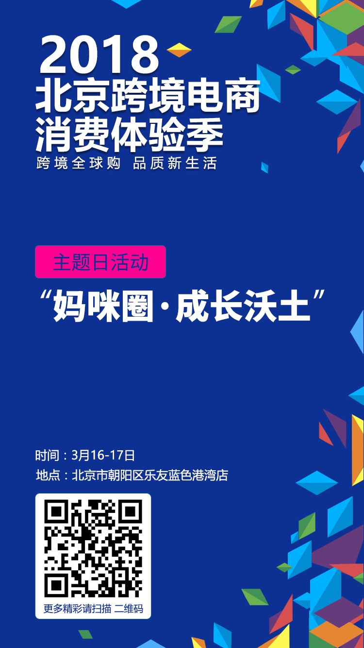 “2018北京跨境电商消费体验季”由北京市商务局主办,市发展改革委、市财政局、市工商局、北京海关、国家税务总局北京市税务局、北京外汇管理部、市邮政管理局、北京天竺综合保税区管理委员会等全市推进跨境电子商务发展工作小组成员单位支持。“体验季”活动自2018年11月16日开幕,重点围绕大众消费、企业发展、产业升级三方面内容,突出阳光美妆、名品气场、环球饮食、母婴健康四大促销主题,通过消费体验、政策研讨、资源对接等多种形式,全方位呈现北京跨境电商发展特点,营造跨境电商大众消费热潮,带动北京跨境电商产业发展,助力北京打造国际消费枢纽城市。
