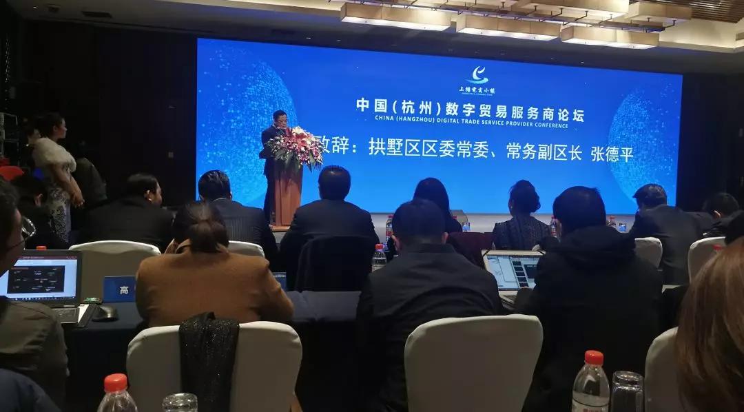2018年12月26日,由商务部电子商务和信息化司、中国(杭州)跨境电商综合试验区、拱墅区人民政府、阿里巴巴商学院、杭州跨境电商协会指导,上塘电商小镇管理委员会主办,上塘街道党工委办事处、运河(国际)跨境电子商务园承办,拱墅区商务局协办的中国(杭州)数字贸易服务商论坛于杭州拱墅运河契弗利酒店成功举办。