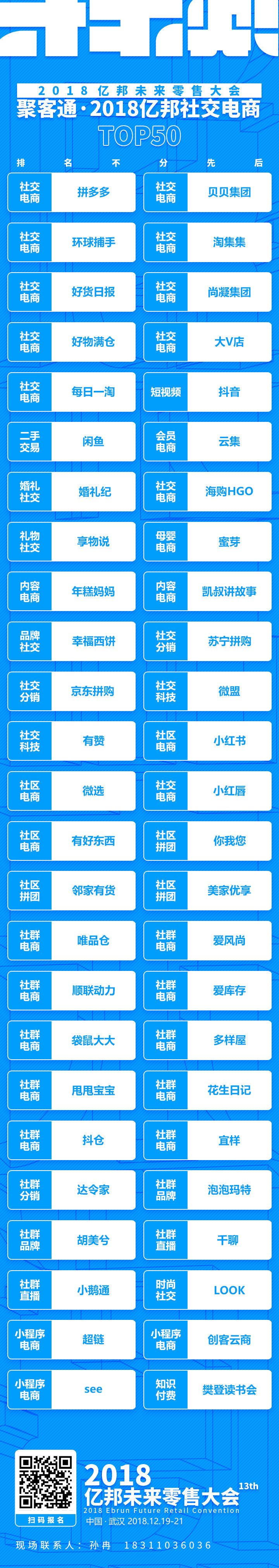 2018亿邦社交电商TOP50。本榜单甄选企业或有疏漏,敬请读者谅解。