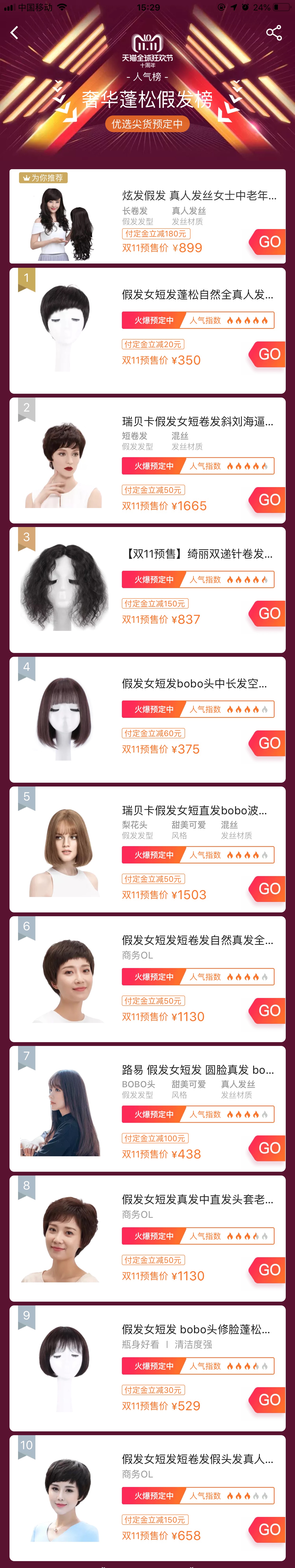 亿邦动力获悉,截至23日下午15点30分,蓬松假发榜排名前三的均为短发,而排名前十的商品中,仅有一款为长发。