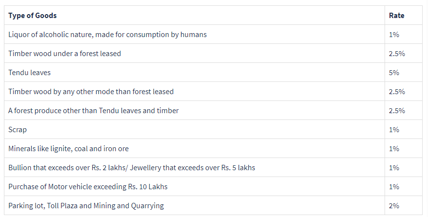 TCS规定的货物和适用的税率