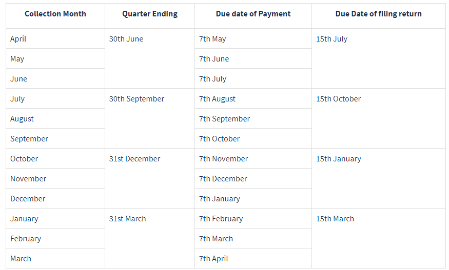 卖家向政府支付TCS的日期
